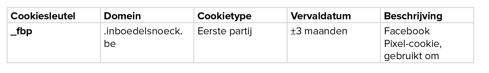 Artikel 4. Welke cookies gebruikt inboedel Snoeck, voor welk doel en wat is de geldigheidsduur?
